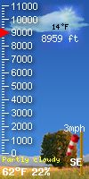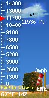 | 1 Rain season: Jan 1st to Dec 31st. 2 Snow season July 1st to June 30th. 3 Snow manually measured usually around 5AM and 5PM. 5 Estimated amount of water needed to replace the water used by plants and evaporation from the past week. (Negative numbers mean amount of water needed, positive numbers mean excess water is present). 6 Air Quality Index is provided by Colorado Department of Public Health & Environment. 9 Solar Index represents either an absolute scale of solar energy (W/m²) using the station’s recorded maximum or a percentage of computed theoretical solar maximum using the station’s location and time of day. These indices differ most when the sun is low on the horizon. The current scale is shown, and will toggle if it or the icon is clicked. 10 Historical average only to day 18 of just the month of April for this station since 2007. 11 Historical average rain this season to day 18 of April for this station since 2007. |