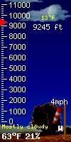 | 1 Rain season: Jan 1st to Dec 31st. 2 Snow season July 1st to June 30th. 3 Snow manually measured usually around 5AM and 5PM. 5 Estimated amount of water needed to replace the water used by plants and evaporation from the past week. (Negative numbers mean amount of water needed, positive numbers mean excess water is present). 6 Air Quality Index is provided by Colorado Department of Public Health & Environment. 9 Solar Index represents either an absolute scale of solar energy (W/m²) using the station’s recorded maximum or a percentage of computed theoretical solar maximum using the station’s location and time of day. These indices differ most when the sun is low on the horizon. The current scale is shown, and will toggle if it or the icon is clicked. 10 Historical average only to day 10 of just the month of November for this station since 2006. 11 Historical average rain this season to day 10 of November for this station since 2006. |